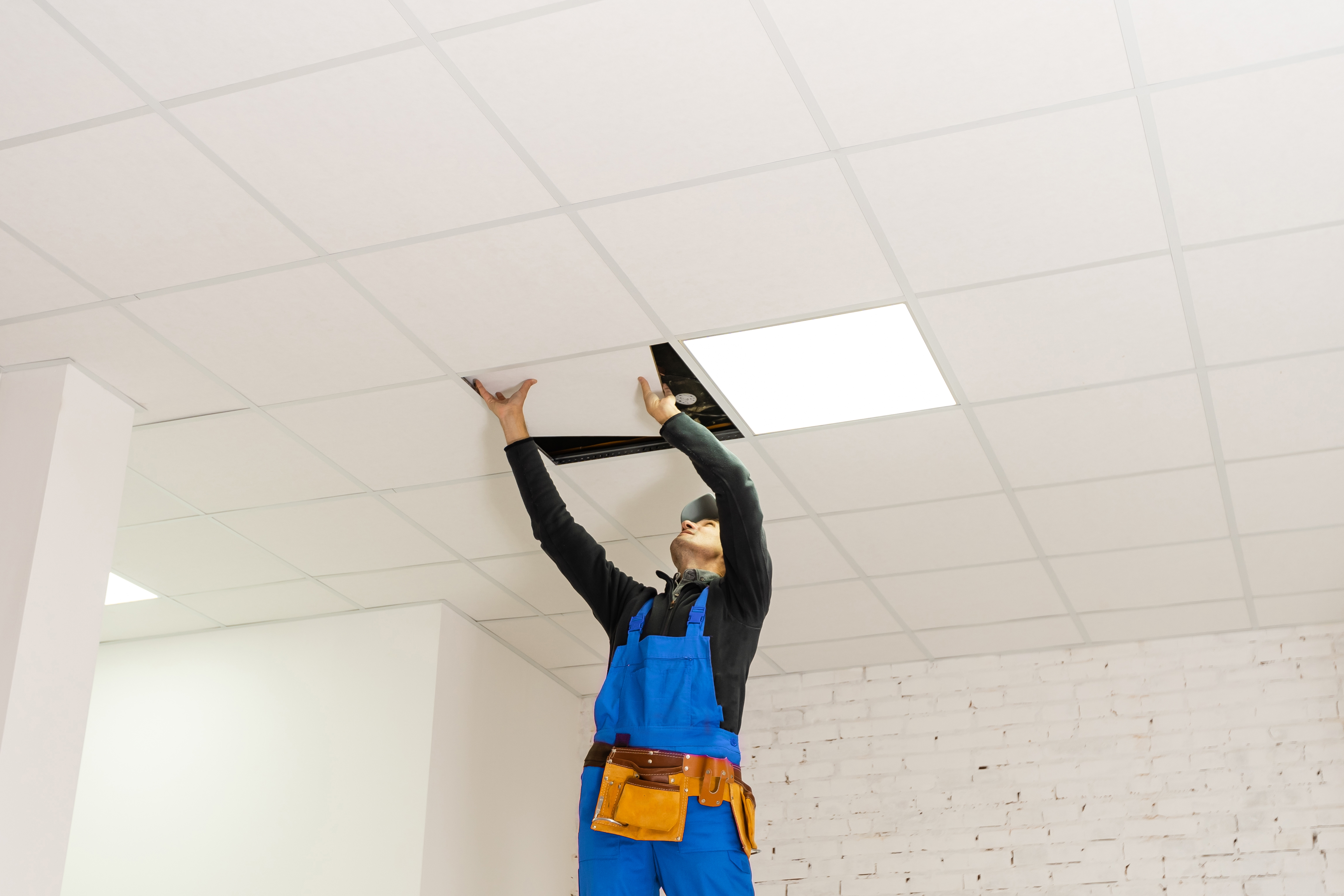 Nicht tragende Bauteile, welche an Decken befestigt sind, dämpfen Schall und hemmen Brände.